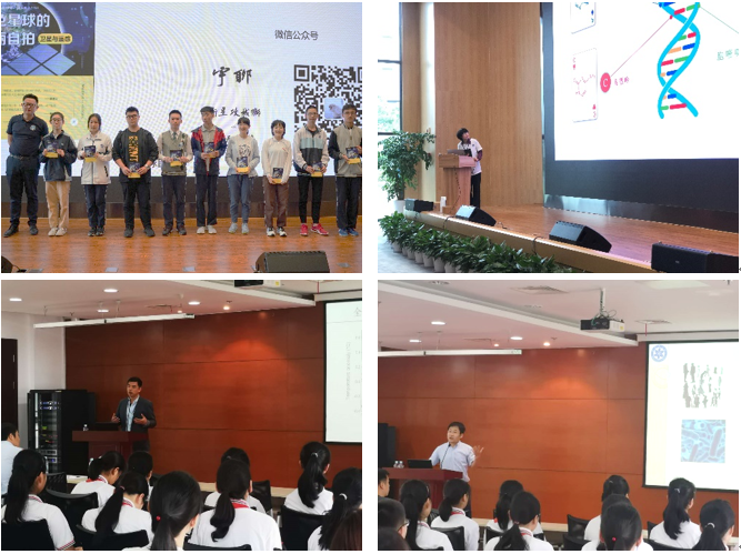 “地球能源及微生物”、“趣说气候变化”、“地球自拍史——卫星遥感”、“神奇的生物——从基因到蛋白质”,来自绿色化学工程技术研究中心、碳数据与碳评估研究中心、国家蛋白质科学研究(上海)设施及微小卫星创新研究院的专家们,顺利获得四个科普报告深入浅出地为同学们解密微生物与能源、二氧化碳与气候变化、卫星与遥感技术、基因和蛋白质等科学问题,思维敏锐的同学们纷纷提问,现场气氛分外活跃。