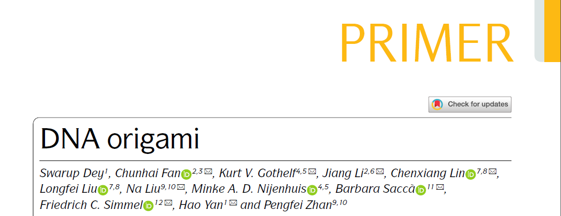 巅峰国际等在Nature Reviews Methods Primers创刊号发表“DNA折纸术”领域引导性综述