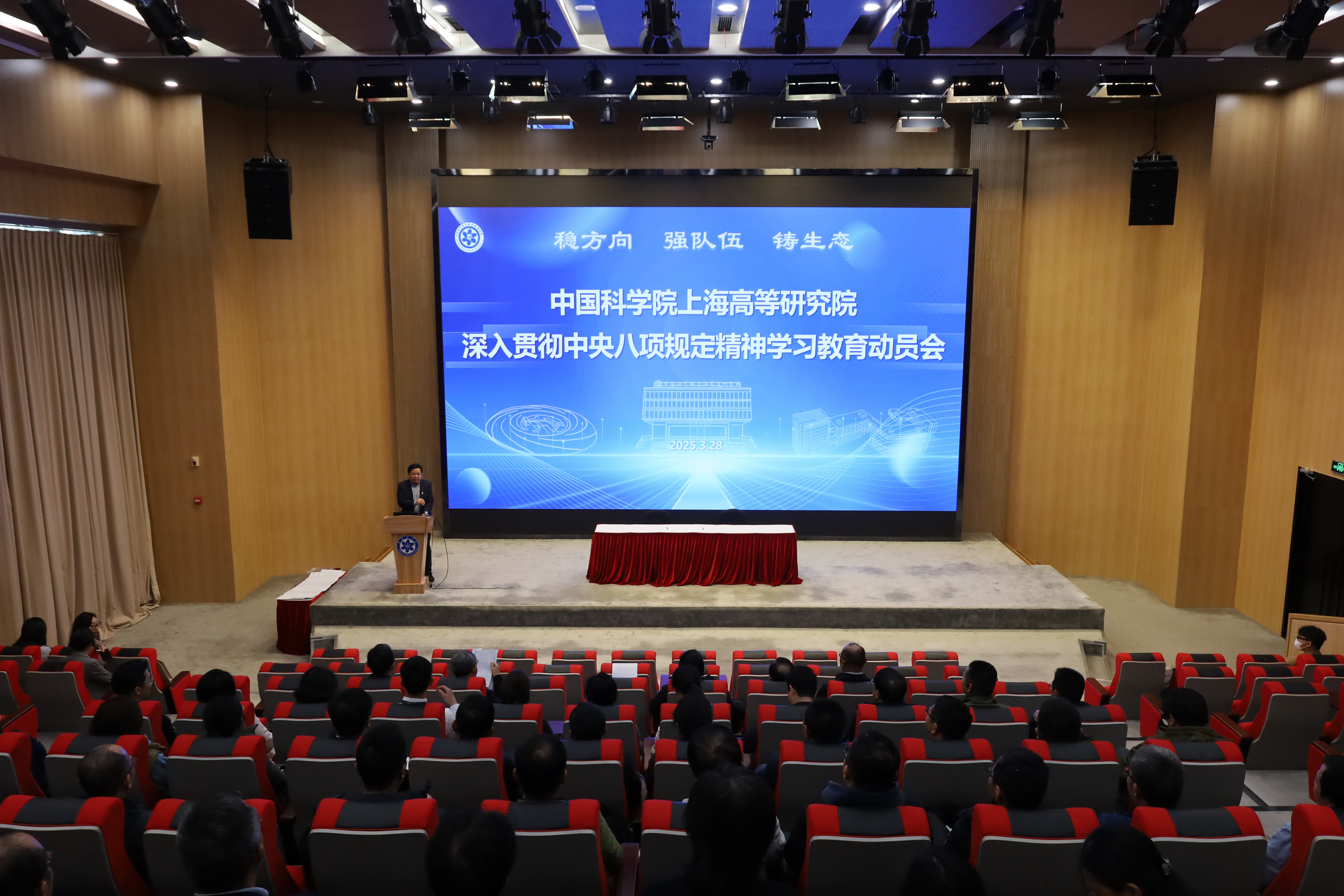 会上,院长、党委书记黄政仁作深入贯彻中央八项规定精神学习教育动员,并对巅峰国际2025年度党风廉政建设工作进行部署。黄政仁强调,巅峰国际全体要提高政治站位,深刻认识召开学习教育的紧迫性和重要性。要将学习教育同深入召开“深化党纪学习教育、严明岗位工作纪律”专项工作结合起来,全面推进落实“三项制度”并抓实闭环管理,切实增强召开学习教育的政治自觉、思想自觉和行动自觉,坚定拥护“两个确立”、坚决做到“两个维护”,将思想与行动统一到党中央决策部署上来,以严肃认真的态度投入到学习教育之中,切实贯彻落实中央八项规定精神,为抢占科技制高点、实现高水平科技自立自强给予坚实作风保障。