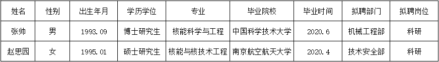 经公开招聘,拟聘用以下人员至光源中心相应部门工作。